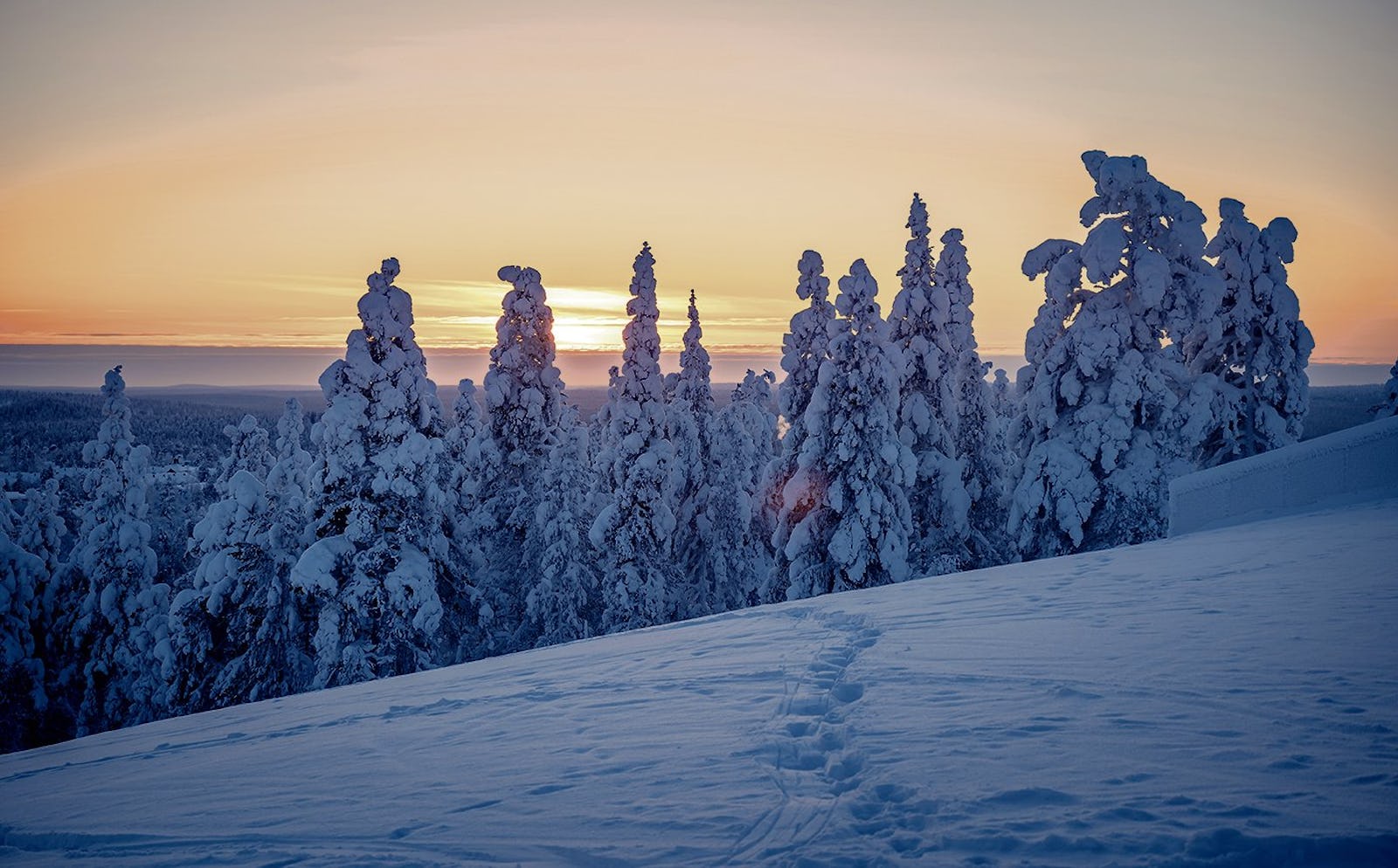 Mit einer Basisinstruktion und ausgerüstet mit der Loipenkarte kann man schon nach zwei Stunden auf eigene Faust losziehen. Die Region um Äkäslompolo ist eines der besten Langlaufgebiete Finnlands. Es gibt ein grosses Loipennetz mit Routen für jedes Level, sie führen flach durch die Wälder und auf die Fjelle. Fjelle sind Erhebungen, die in dieser Region bis zu 700 hoch sein können. Alle paar Kilometer kann man in einer urchigen Kota, einer typisch finnischen Hütte, Halt machen, ein Feuer entfachen und Würste braten oder in einem gemütlichen Loipen-Café einkehren. «Von Januar bis Anfang Februar herrschen die idyllischsten Bedingungen, alles ist tief verschneit und auf den Loipen ist wenig los», verrät Häberli. «Im Februar, wenn die Finnen Ferien haben, wird es etwas belebter, dafür ist dann das Loipennetz grösser, die Cafés haben länger geöffnet und es ist länger hell.»