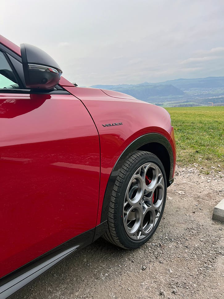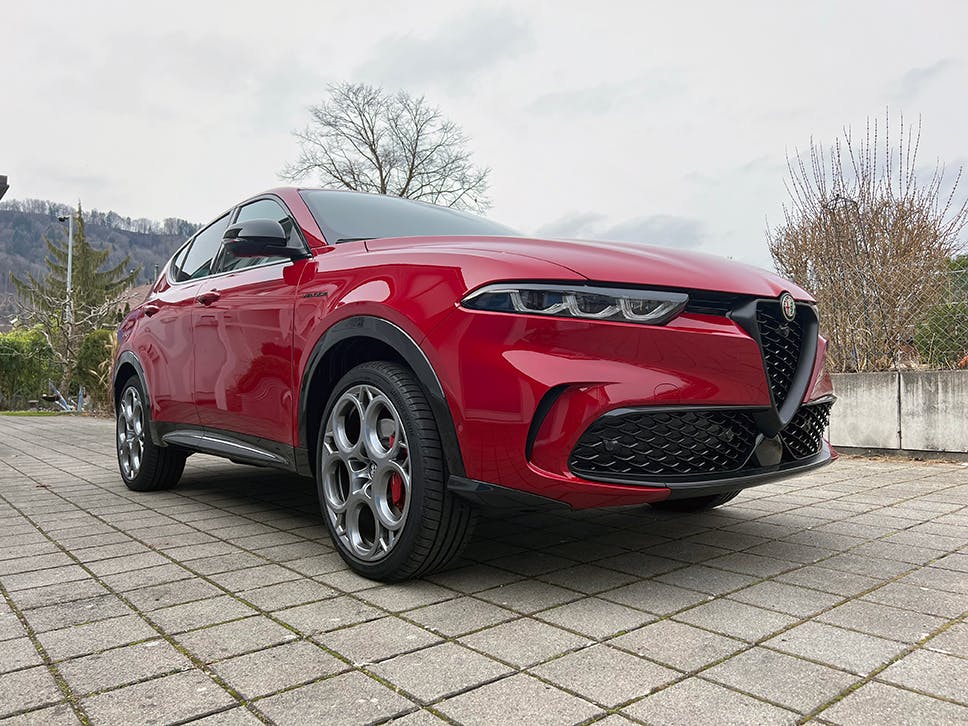 Das Testfahrzeug (Alfa Romeo Tonale PHEV Q4 Veloce) in Rosso Alfa von der Garage Marti in Kehrsatz – Alfa Romeo Bern – ist für CHF 64 900.– zu kaufen.