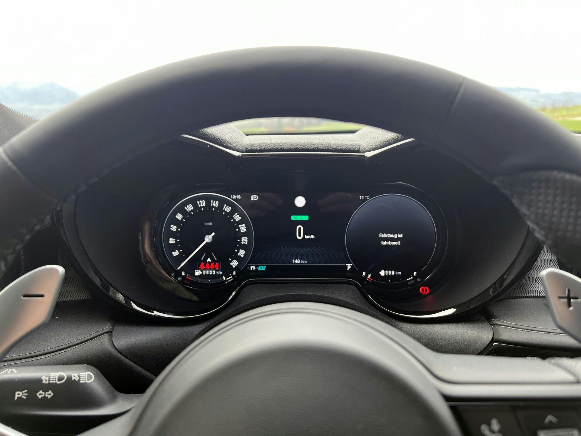 Im Innenraum wähne ich mich wie in einem Formel-1-Rennwagen. Alles wirkt sportlich und modern. Mächtige Schaltwippen aus Aluminium, Digitalinstrumente, die das Design legendärer Alfa-Zeiten in die Neuzeit übersetzen, angenehme Materialien, die den Händen schmeicheln und Sportsitze mit Kunstlederbespannung, die ihren Namen verdienen.