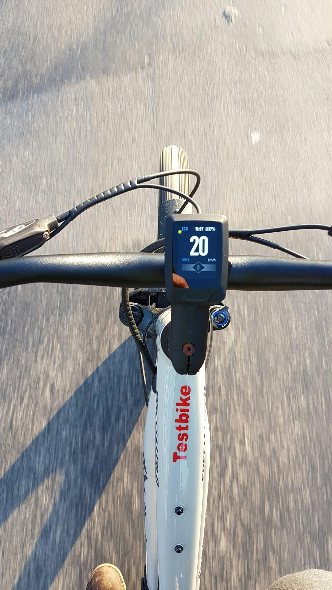 Wochenende, Zeit für den Härtetest. Das Ziel ist der Grenchenberg, 31 Kilometer und 1000 Höhenmeter entfernt. «Starke Steigungen», warnt Google Maps. Normalerweise Grund genug für mich, auf die Fahrt zu verzichten. Aber mit meinem neuen E-Bikefahrer-Bewusstsein: Easy! Mit einer 100-Prozent-Akkuladung geht es los. Über die Rolling Hills des Rapperswiler Plateaus und des Buechibergs cruist es sich mit dem Vado prächtig. Dass nach jedem Tal wieder ein Hügel kommt, ist kein Grund zur Sorge. Die Unterstützungsmodi Eco, Sport und Turbo und die 11 Gänge lassen sich so kombinieren, dass man immer mit vernünftigem Kraftaufwand vorankommt. Dabei hilft das in der Mitte der Gabel befestigte Display, das beim Vado Mastermind TCD (Turbo Connect Display) heisst. Es zeigt unter anderem die Trittfrequenz in Pedalumdrehungen pro Minute an. Ist sie im optimalen Bereich, erscheint die Zahl auf einer Leiste, die grün leuchtet. Für die Motorunterstützung und die Reichweite ist das ideal. Tritt man zu stark oder zu schwach in die Pedale, wechselt die Farbe zu warnendem Orange und Rot. Das Mastermind zeigt ausserdem die Geschwindigkeit, den Unterstützungsmodus und den Ladestand der Batterie an. Am abgefahrensten sind jedoch die Punkte, die sich am linken Rand des Displays von unten nach oben bewegen. Sie stehen für Autos, die sich von hinten nähern. Das Mastermind weiss Bescheid, weil am Gepäckträger ein Radar montiert ist, der Fahrzeuge ab 140 Meter Entfernung erkennt. Mehr noch: Er erkennt sogar, wenn ein Auto zu schnell fährt und zeigt es an.